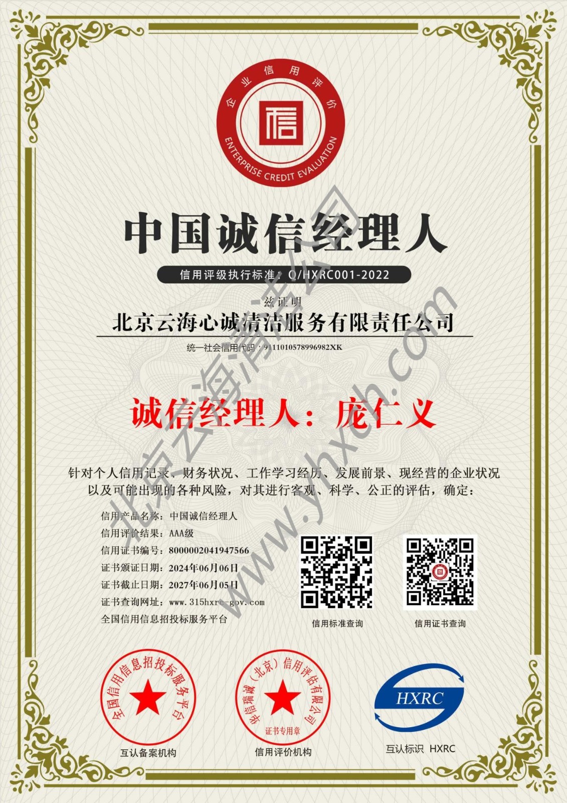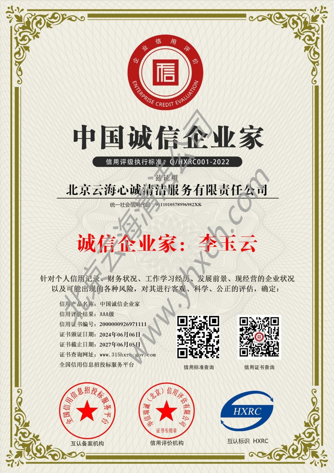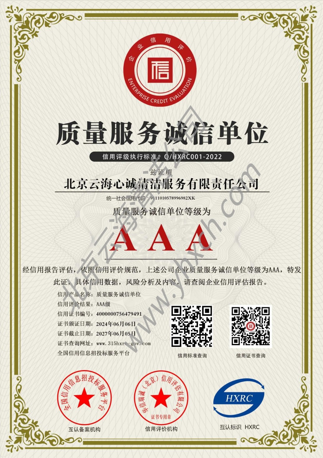 AA级资信证书